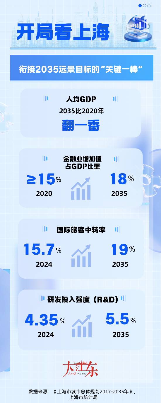 开局看上海。去年底•★,上海市委八次全会审议通过“关于制定上海市国民经济和社会发展第十五个五年规划的建议●”,明确“十五五•▪•”将是上海“乘势而上的全面发力期★、转型升级的攻坚决胜期”。根据规划,到2035年○,人均地区生产总值比2020年翻一番,基本建成具有世界影响力的社会主义现代化国际大都市。